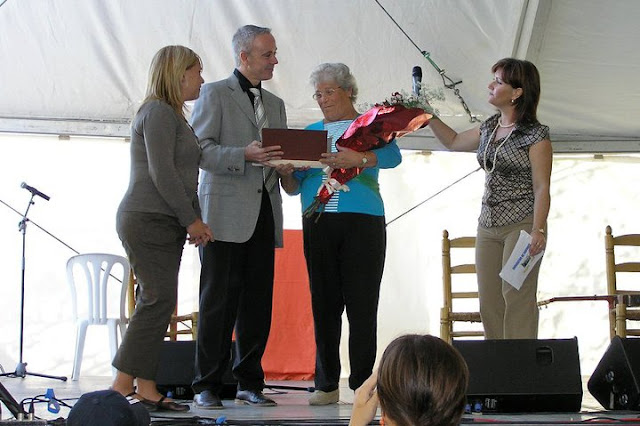Hace aproximadamente cinco años se celebró en Periana el encuentro de Mayores, en esta ocasión se homenajeó a Fina, por una vida marcada por el trabajo sobrellevando a una familia numerosa, una mujer activa y luchadora que hoy por hoy sigue trabajando con ilusión y esfuerzo, le entrega la placa Adolfo Moreno Carrera, alcalde de Periana acompañado de Paloma Díaz Pérez, Concejala de este Ayuntamiento.