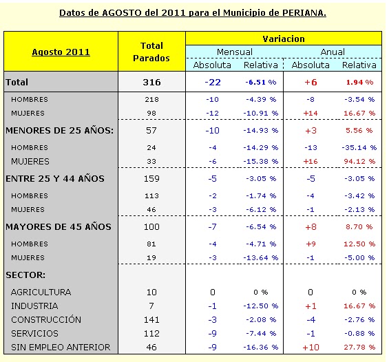 El paro baja un 6.51% durante el mes de agosto en Periana.